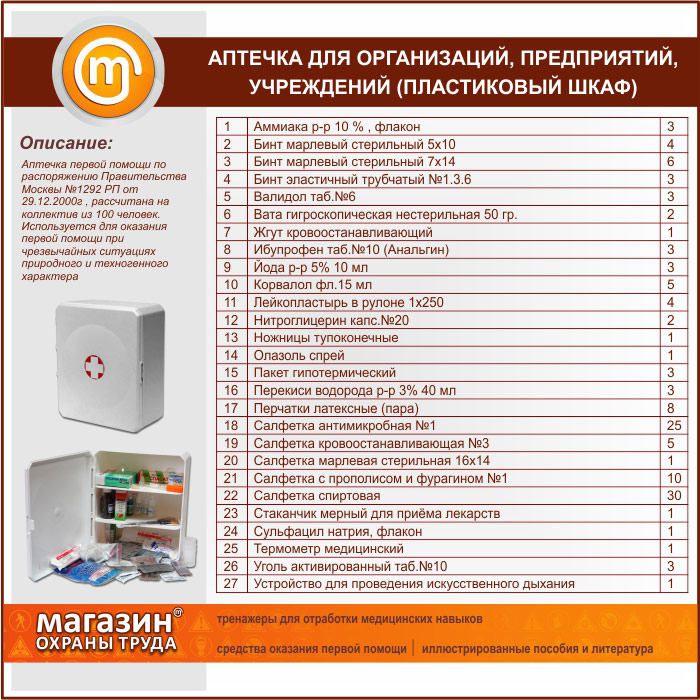Аптечка для организаций, предприятий и учреждений (на 100 человек) - металлический шкаф | Аптечка для организаций, предприятий и учреждений (на 100 человек) - металлический шкаф |