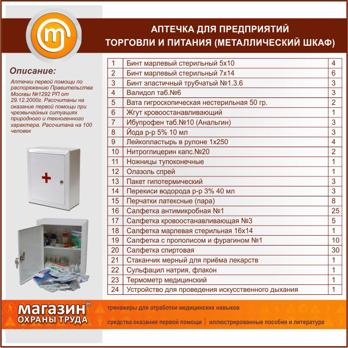 Аптечка для предприятий торговли и питания - (на 100 человек) - металлический шкаф в Сургуте купить