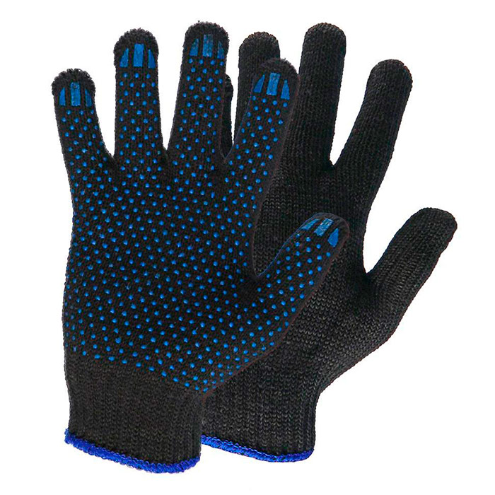 Перчатки Х/Б (5 нитей) черные с ПВХ "Точка" в Сургуте купить