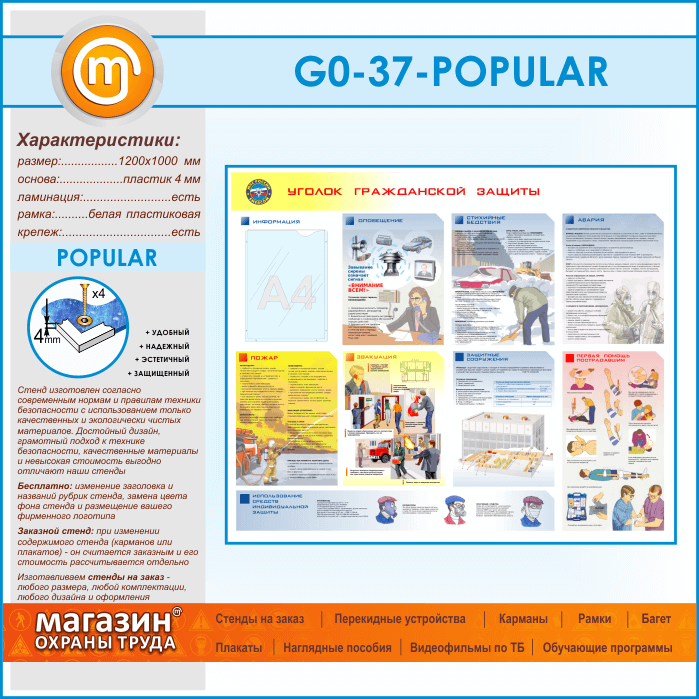 Стенд «Уголок гражданской защиты» с карманом (GO-37)