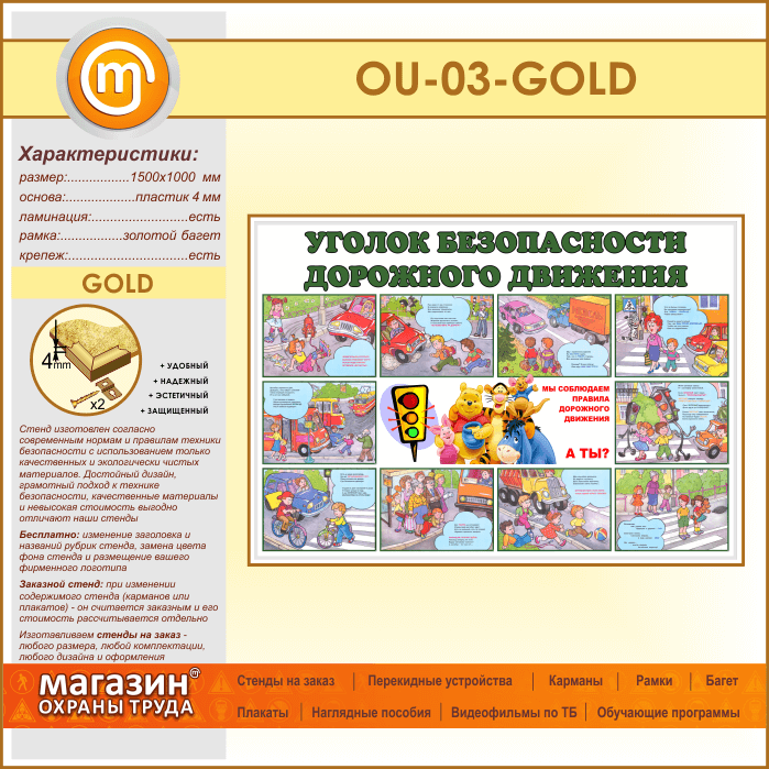 Стенд «Уголок безопасности дорожного движения» (OU-03-GOLD) в Сургуте купить