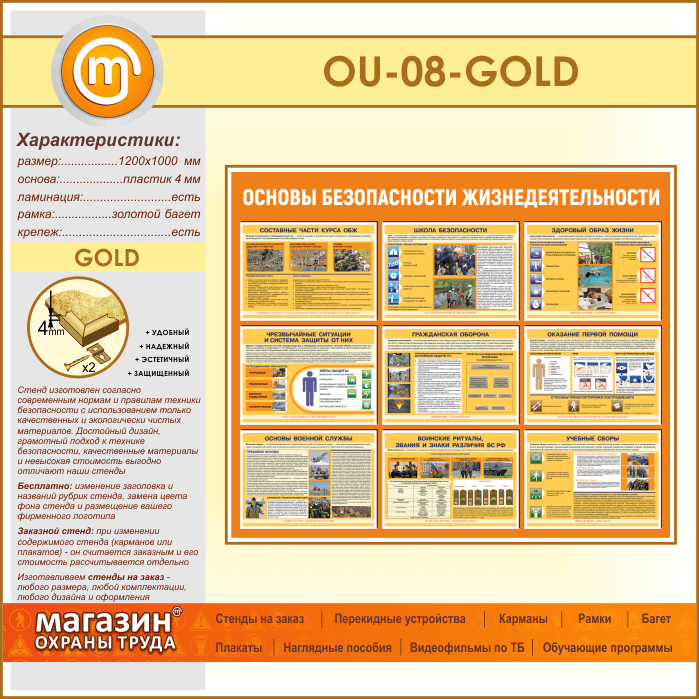 Стенд «Основы безопасности жизнедеятельности» (OU-08-GOLD) в Сургуте купить