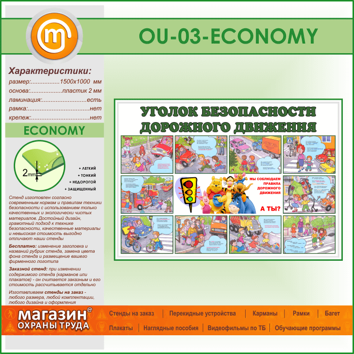Стенд «Уголок безопасности дорожного движения» (OU-03-ECONOMY) в Сургуте купить