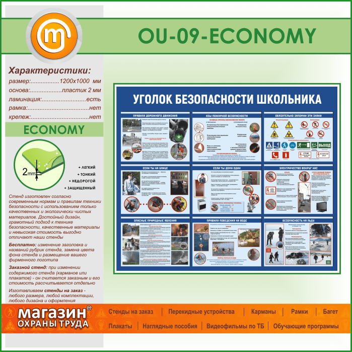 Стенд «Уголок безопасности школьника» (OU-09-ECONOMY) в Сургуте купить