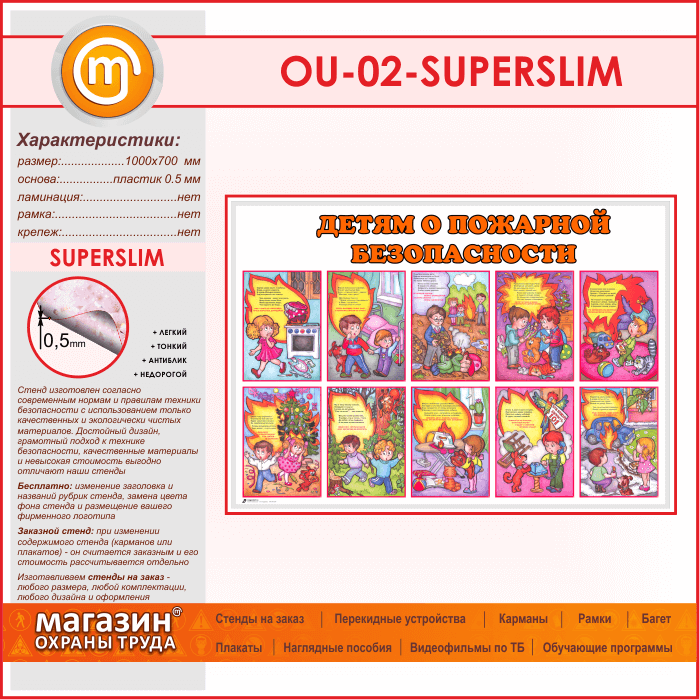 Стенд «Детям о пожарной безопасности» (OU-02-SUPERSLIM) в Сургуте купить