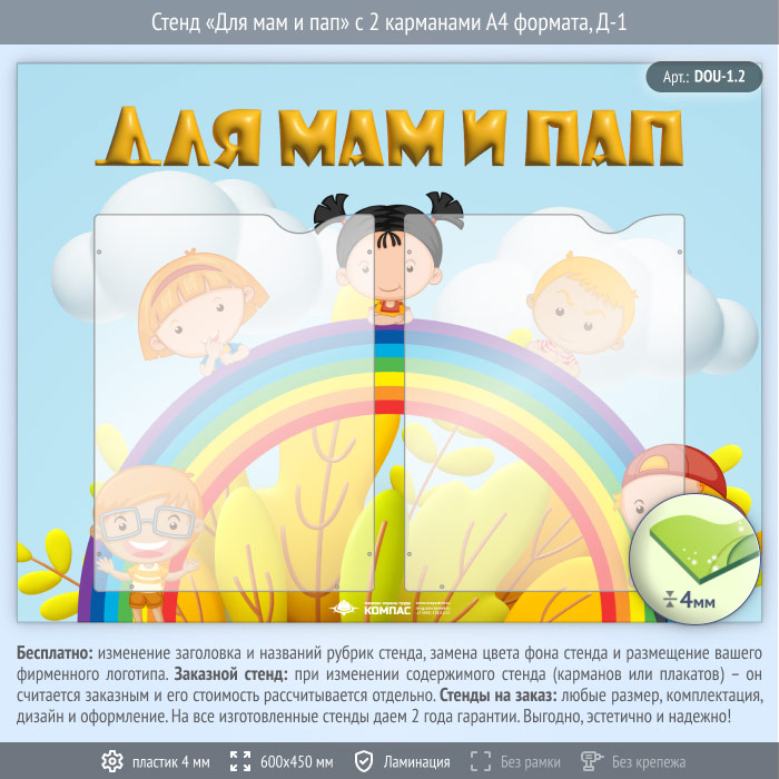 Стенд «Для мам и пап» с 2 карманами А4 формата (DOU-1.2) в Сургуте купить