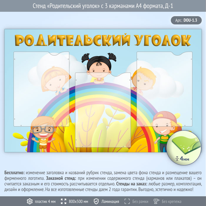 Стенд «Родительский уголок» с 3 карманами А4 формата (DOU-1.3) в Сургуте купить