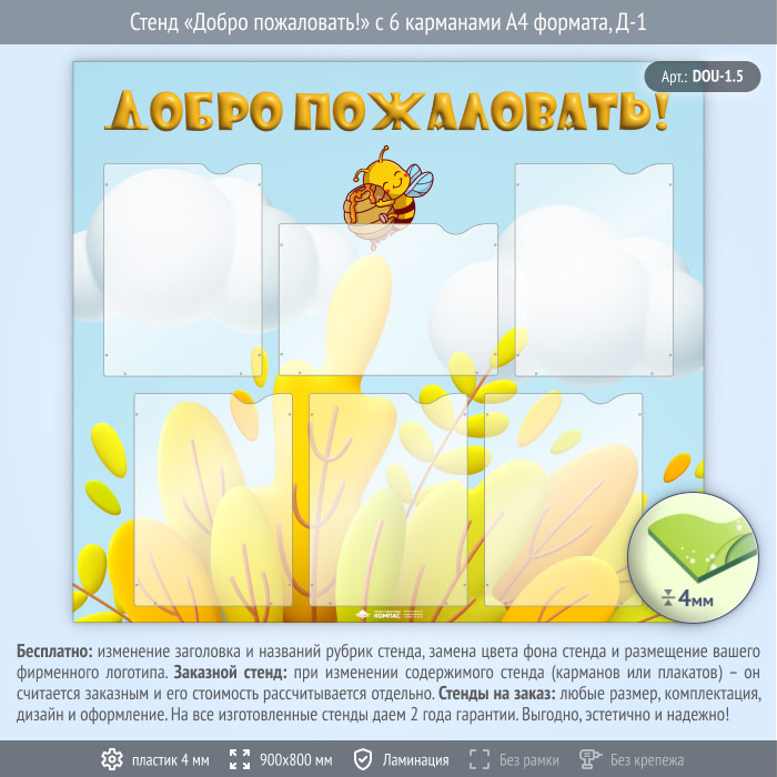 Стенд «Добро пожаловать!» с 6 карманами А4 формата (DOU-1.5) в Сургуте купить