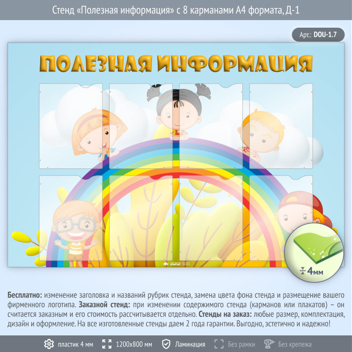 Стенд «Полезная информация» с 8 карманами А4 формата (DOU-1.7) в Сургуте купить