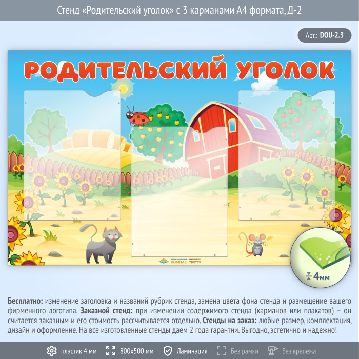 Стенд «Родительский уголок» с 3 карманами А4 формата (DOU-2.3) в Сургуте купить