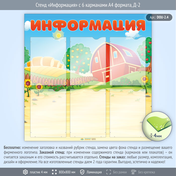 Стенд «Информация» с 6 карманами А4 формата (DOU-2.4) в Сургуте купить