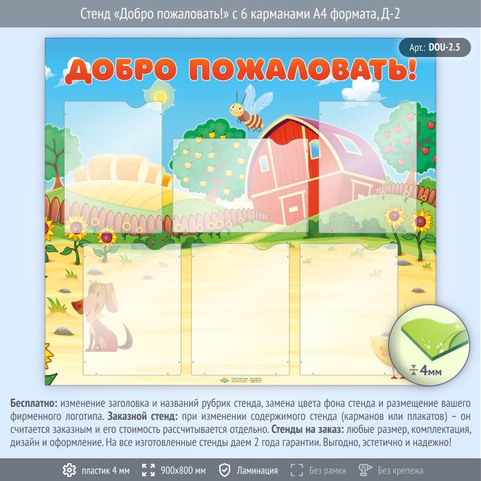 Стенд «Добро пожаловать!» с 6 карманами А4 формата (DOU-2.5) в Сургуте купить