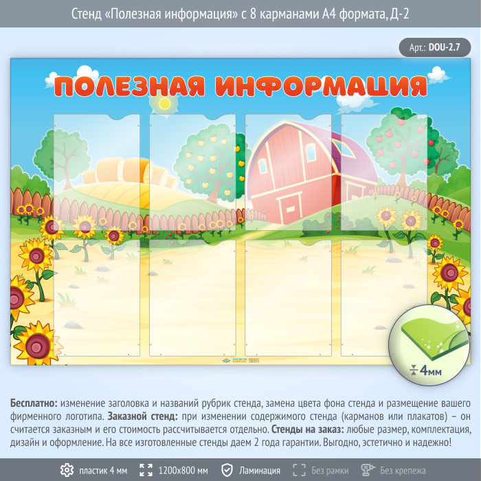 Стенд «Полезная информация» с 8 карманами А4 формата (DOU-2.7) в Сургуте купить