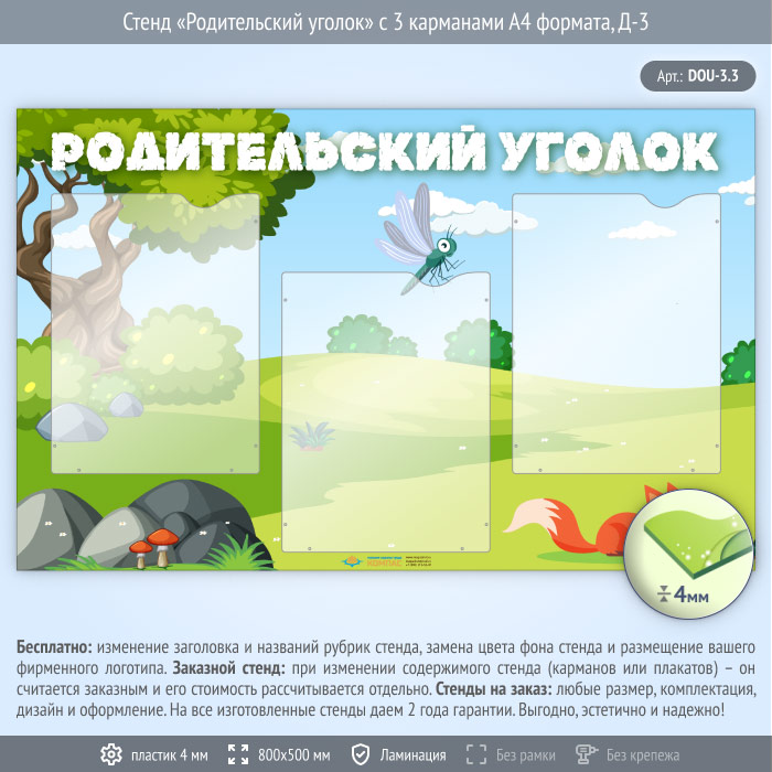 Стенд «Родительский уголок» с 3 карманами А4 формата (DOU-3.3) в Сургуте купить