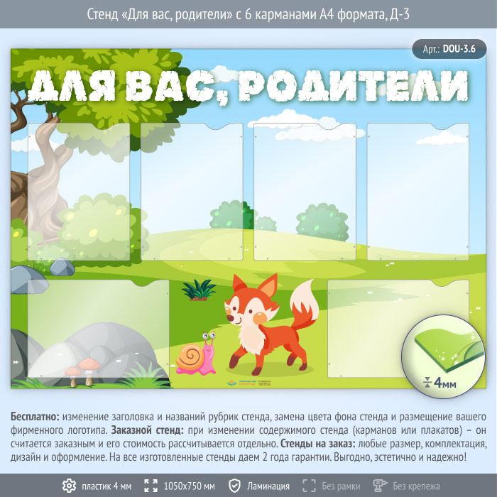 Стенд «Для вас, родители» с 6 карманами А4 формата (DOU-3.6) в Сургуте купить