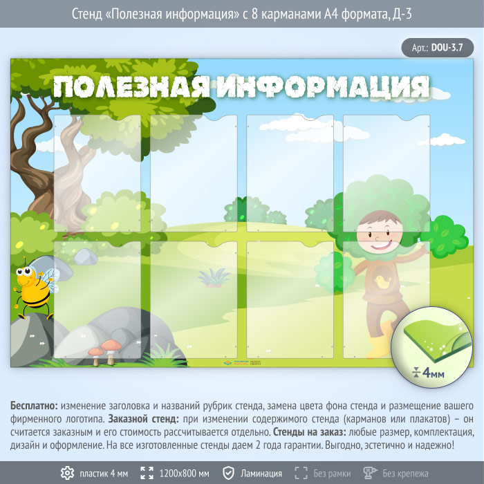 Стенд «Полезная информация» с 8 карманами А4 формата (DOU-3.7) в Сургуте купить