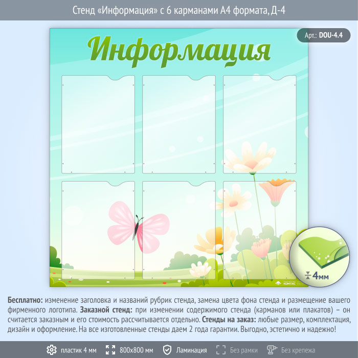Стенд «Информация» с 6 карманами А4 формата (DOU-4.4) в Сургуте купить