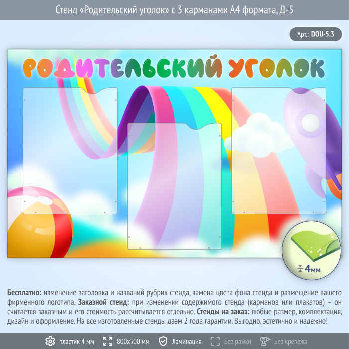 Стенд «Родительский уголок» с 3 карманами А4 формата (DOU-5.3) в Сургуте купить