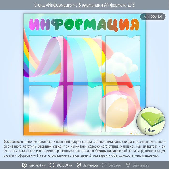 Стенд «Информация» с 6 карманами А4 формата (DOU-5.4) в Сургуте купить