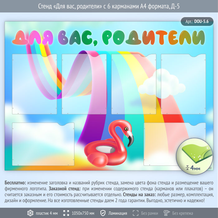 Стенд «Для вас, родители» с 6 карманами А4 формата (DOU-5.6) в Сургуте купить