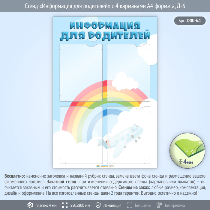 Стенд «Информация для родителей» с 4 карманами А4 формата (DOU-6.1) в Сургуте купить