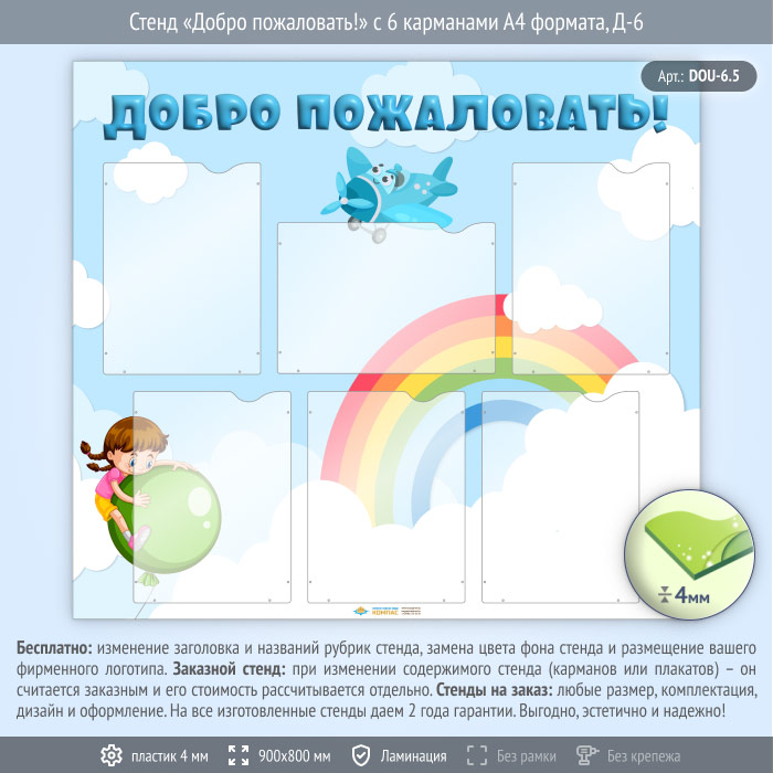 Стенд «Добро пожаловать!» с 6 карманами А4 формата (DOU-6.5) в Сургуте купить