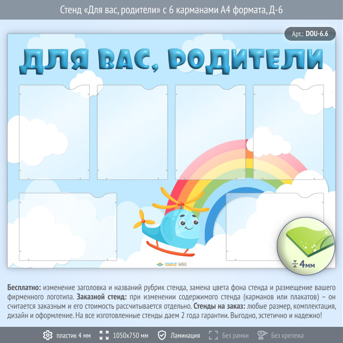 Стенд «Для вас, родители» с 6 карманами А4 формата (DOU-6.6) в Сургуте купить