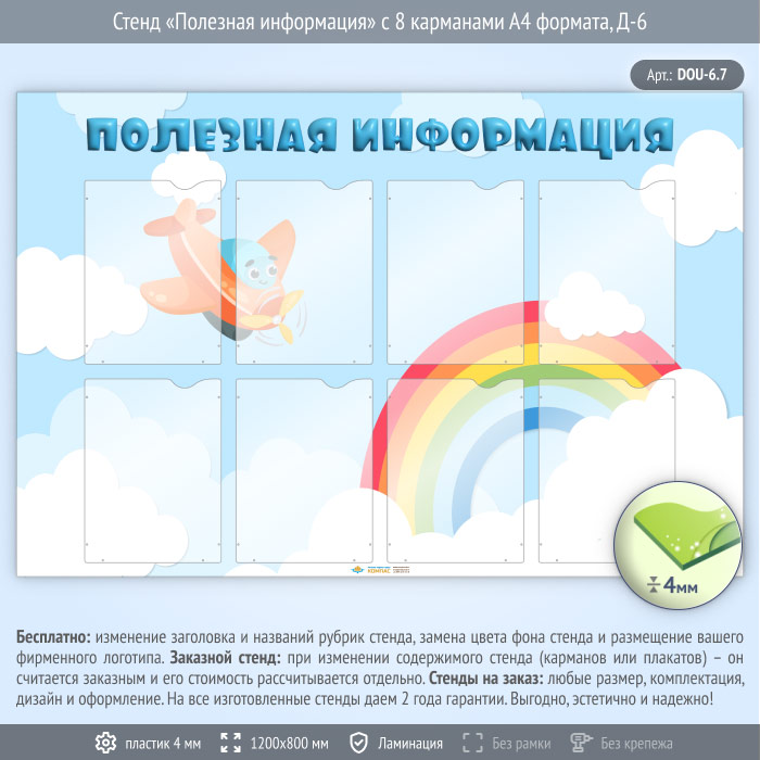 Стенд «Полезная информация» с 8 карманами А4 формата (DOU-6.7) в Сургуте купить