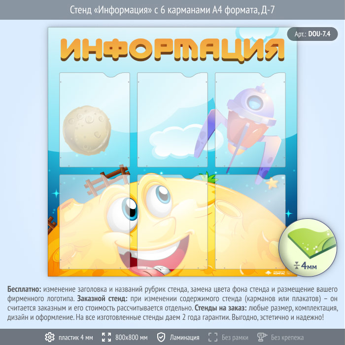 Стенд «Информация» с 6 карманами А4 формата (DOU-7.4) в Сургуте купить