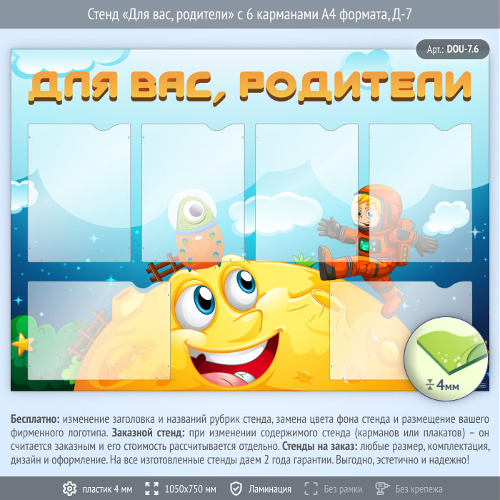Стенд «Для вас, родители» с 6 карманами А4 формата (DOU-7.6) в Сургуте купить