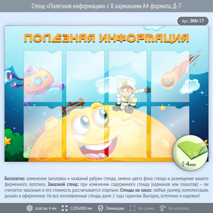 Стенд «Полезная информация» с 8 карманами А4 формата (DOU-7.7) в Сургуте купить