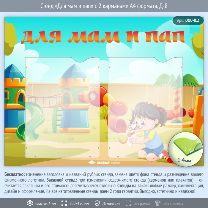 Стенд «Для мам и пап» с 2 карманами А4 формата (DOU-8.2) в Сургуте купить