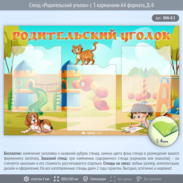 Стенд «Родительский уголок» с 3 карманами А4 формата (DOU-8.3) в Сургуте купить