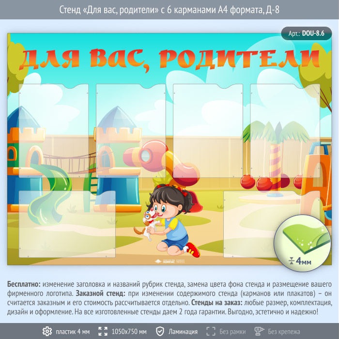Стенд «Для вас, родители» с 6 карманами А4 формата (DOU-8.6) в Сургуте купить