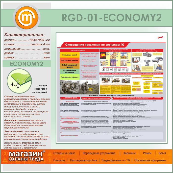 Стенд «Оповещение населения по сигналам ГО» (RGD-01-ECONOMY2) в Сургуте купить