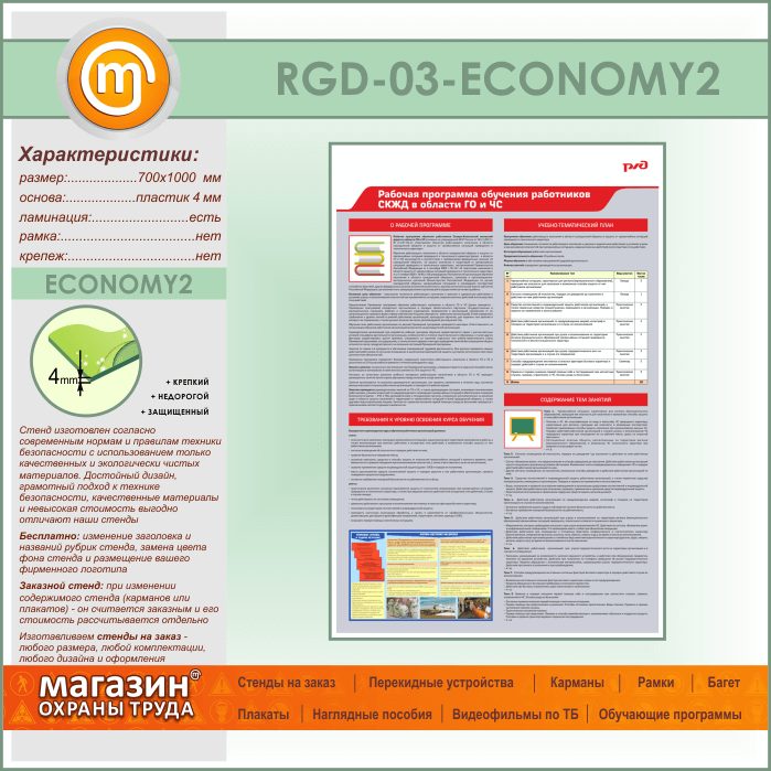 Стенд «Рабочая программа обучения работников СКЖД в области ГО и ЧС» (RGD-03-ECONOMY2) в Сургуте купить
