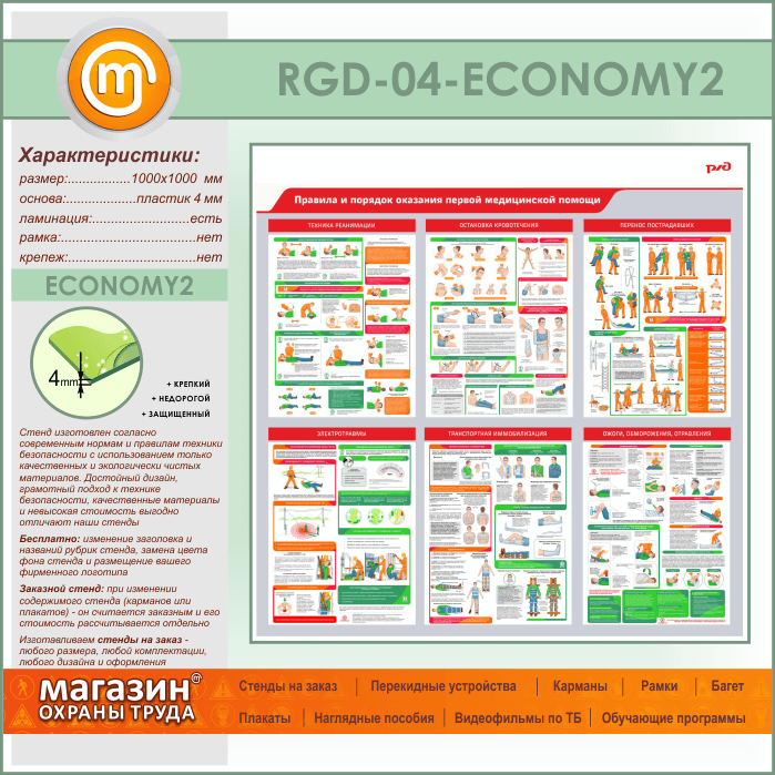 Стенд «Правила и порядок оказания первой медицинской помощи» (RGD-04-ECONOMY2) в Сургуте купить