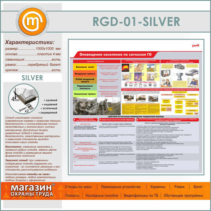 Стенд «Оповещение населения по сигналам ГО» (RGD-01-SILVER) в Сургуте купить