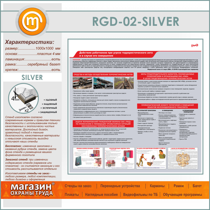 Стенд «Действия работников при угрозе совершения террористического акта и в случае его совершения» (RGD-02-SILVER) в Сургуте купить