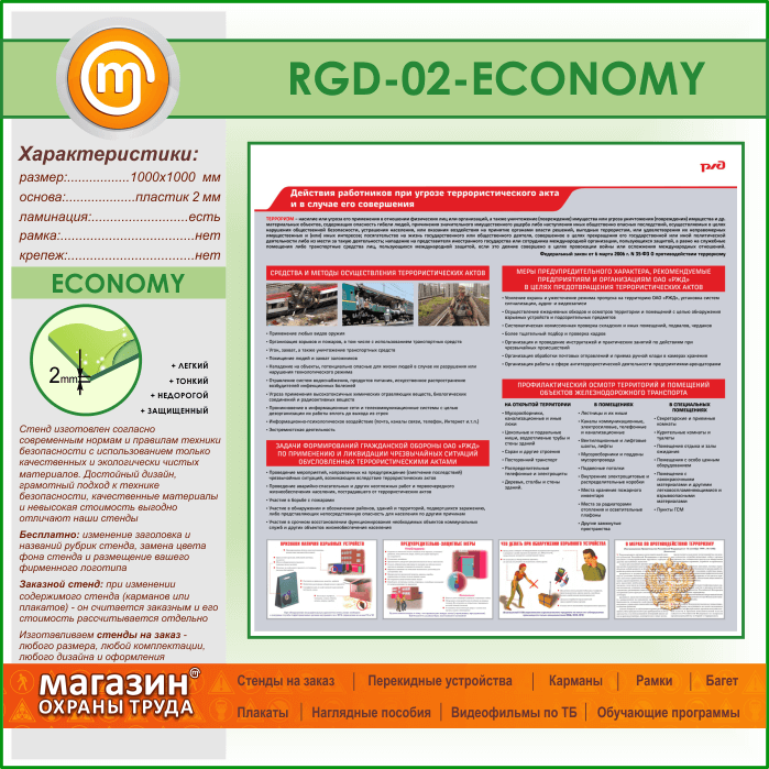 Стенд «Действия работников при угрозе совершения террористического акта и в случае его совершения» (RGD-02-ECONOMY) в Сургуте купить