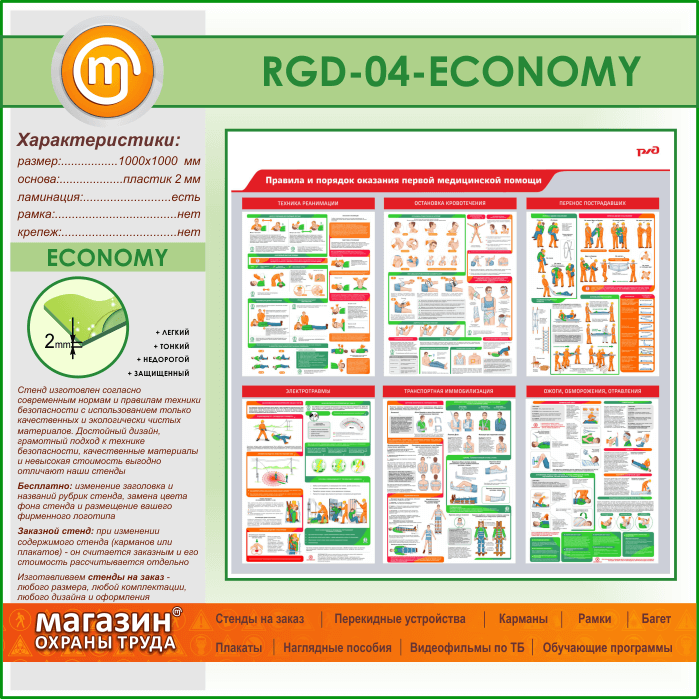 Стенд «Правила и порядок оказания первой медицинской помощи» (RGD-04-ECONOMY) в Сургуте купить