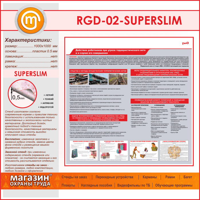 Стенд «Действия работников при угрозе совершения террористического акта и в случае его совершения» (RGD-02-SUPERSLIM) в Сургуте купить