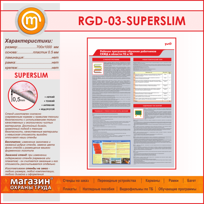 Стенд «Рабочая программа обучения работников СКЖД в области ГО и ЧС» (RGD-03-SUPERSLIM) в Сургуте купить