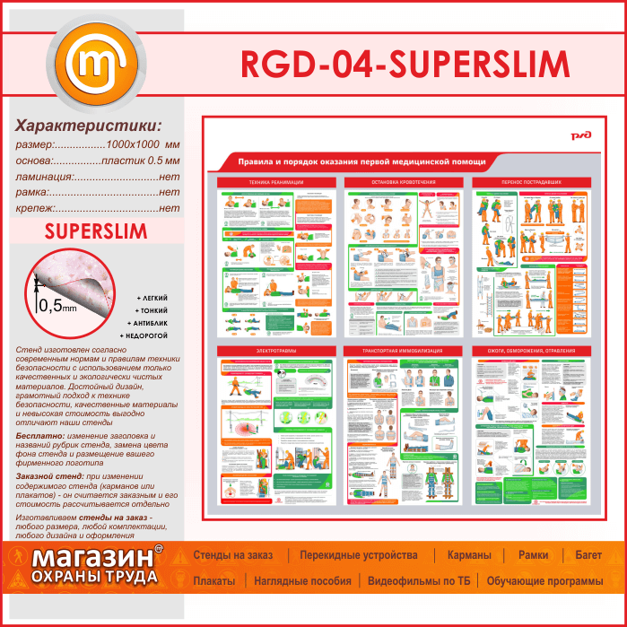 Стенд «Правила и порядок оказания первой медицинской помощи» (RGD-04-SUPERSLIM) в Сургуте купить