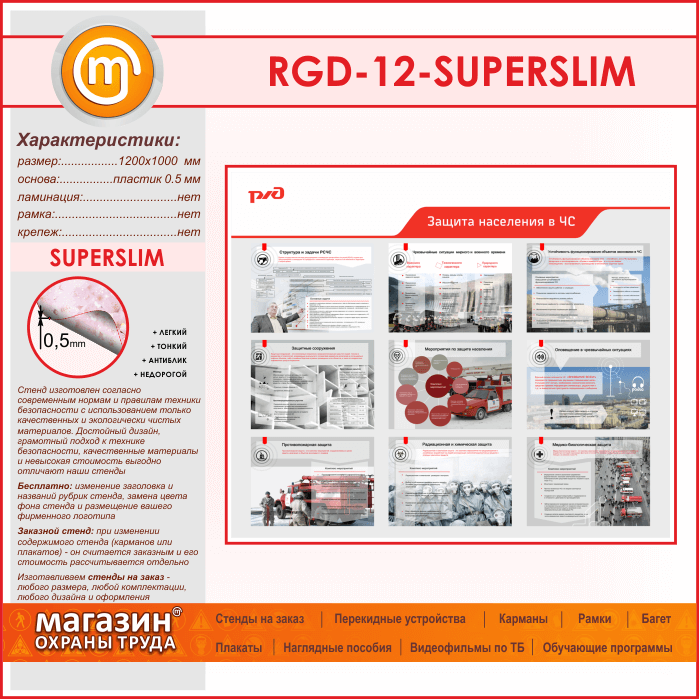 Стенд «Защита населения в ЧС» (RGD-12-SUPERSLIM) в Сургуте купить