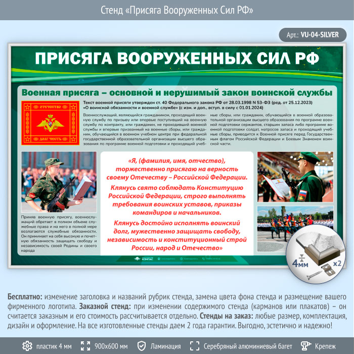 Стенд «Присяга Вооруженных Сил РФ» (VU-04-SILVER) в Сургуте купить