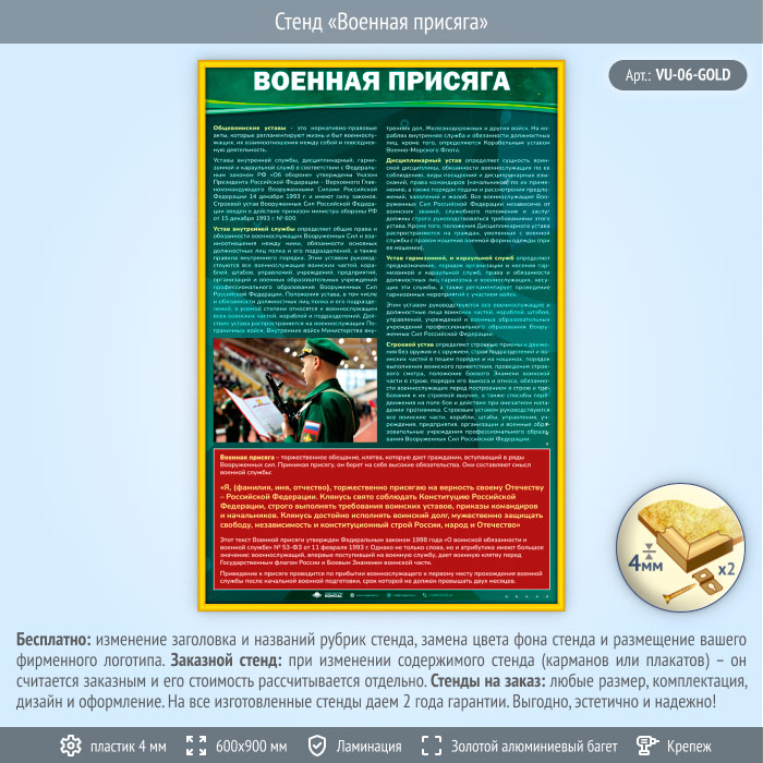 Стенд «Военная присяга» (VU-06-GOLD) в Сургуте купить