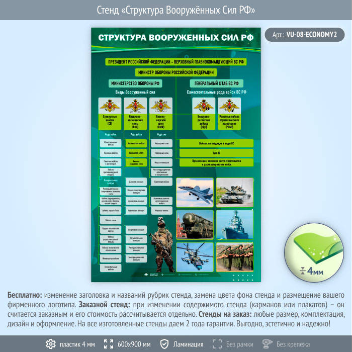 Стенд «Структура Вооружённых Сил РФ» (VU-08-ECONOMY2) в Сургуте купить
