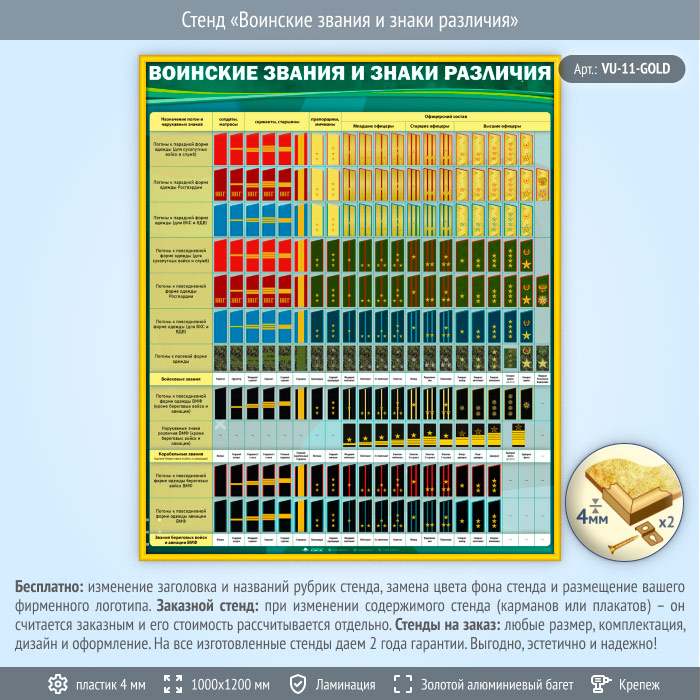 Стенд «Воинские звания и знаки различия» (VU-11-GOLD) в Сургуте купить