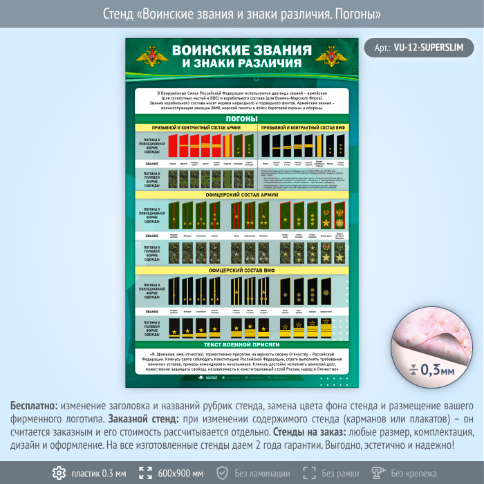 Стенд «Воинские звания и знаки различия. Погоны» (VU-12-SUPERSLIM) в Сургуте купить
